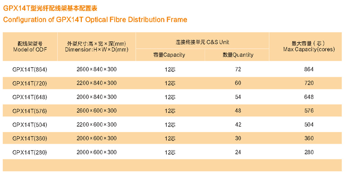 GPX14T型光纤配线架是一种高密度、大容量、全正面操作的光纤配线设备。它特别适用于接入网中大容量光纤成端和大容量的光分支点。
